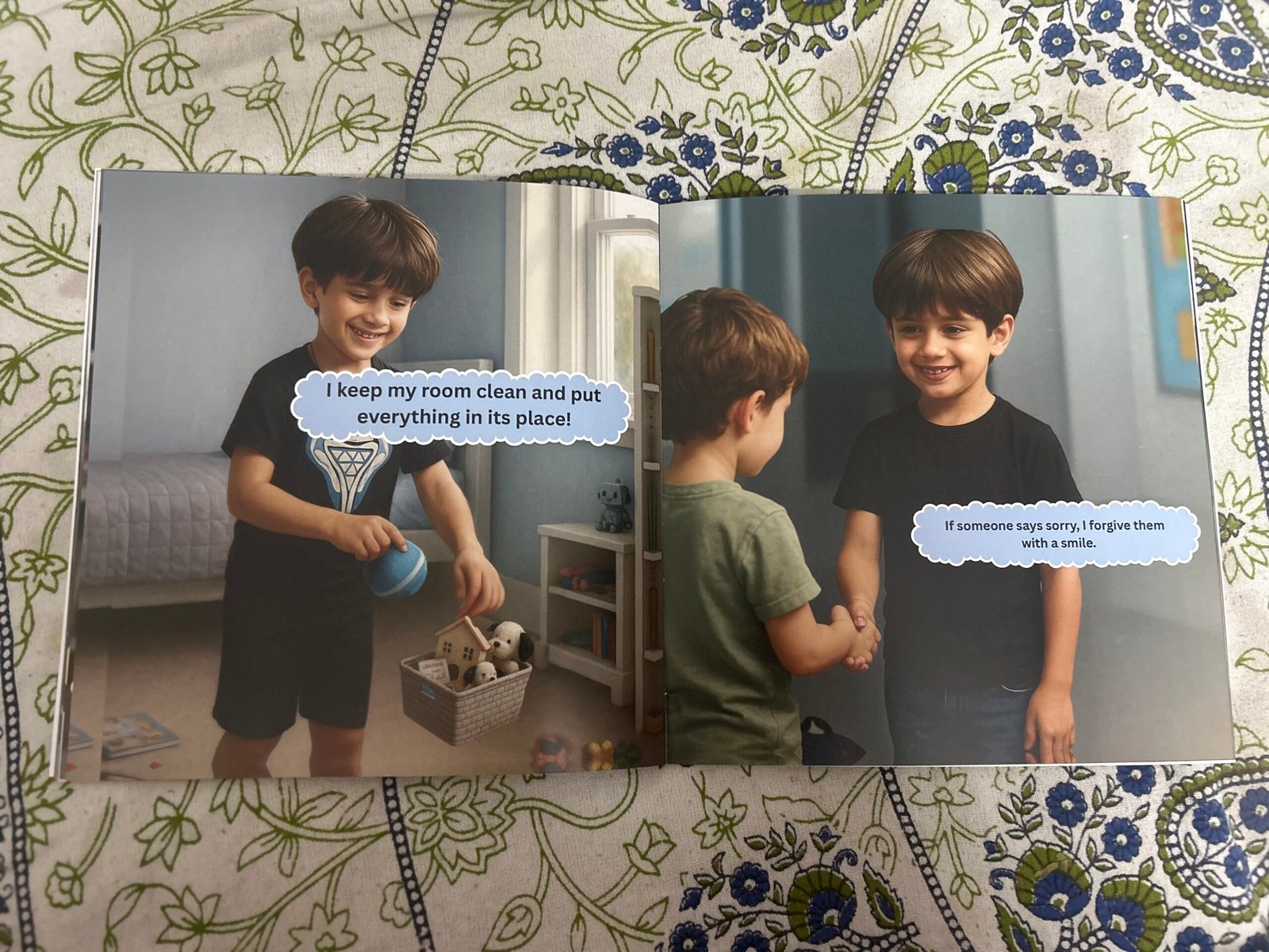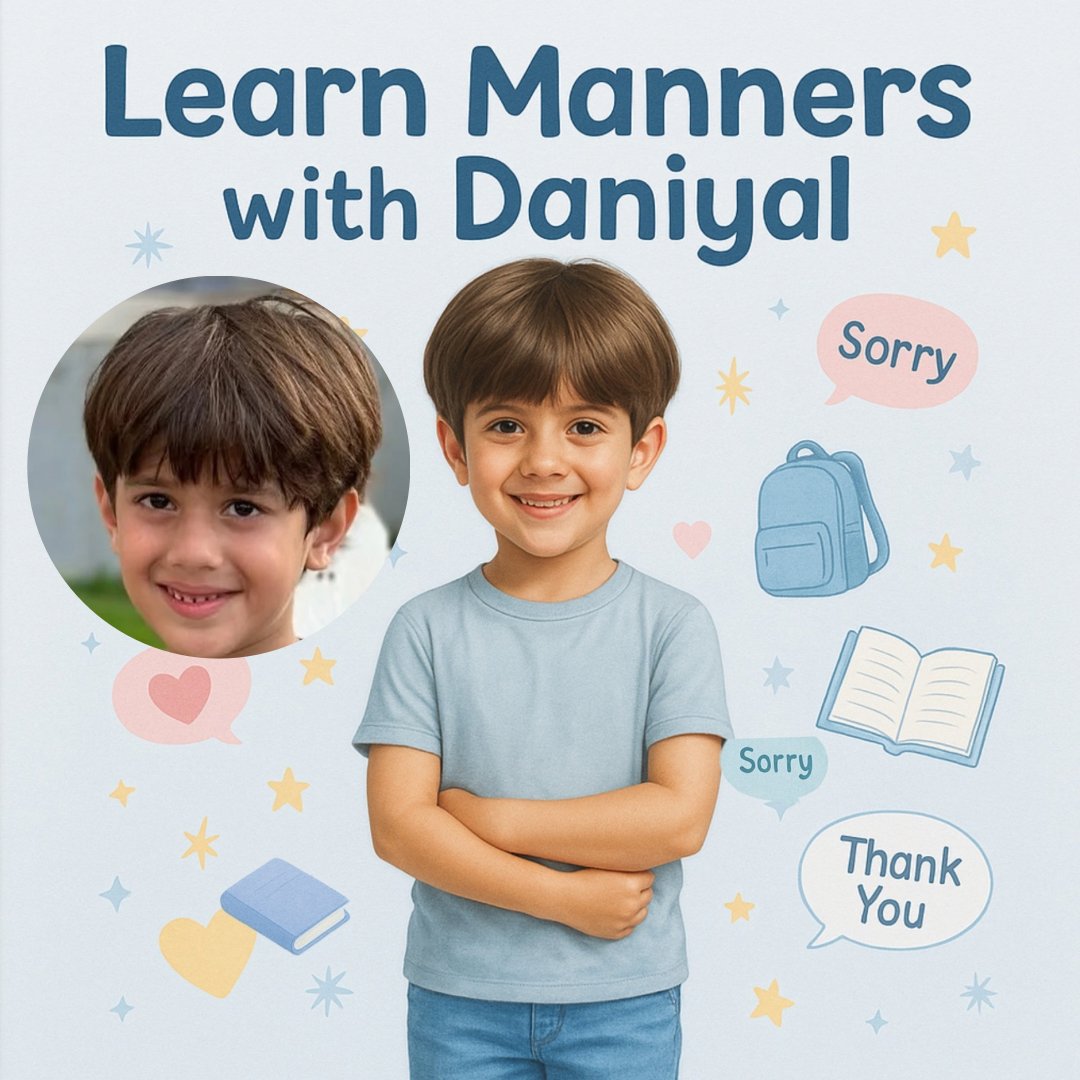 This gentle and engaging book introduces everyday manners like saying please and thank you, sharing, being kind, listening, and cleaning up. Each lesson is brought to life through personalized text and illustrations created from your child’s photo using safe, child-friendly AI generation.